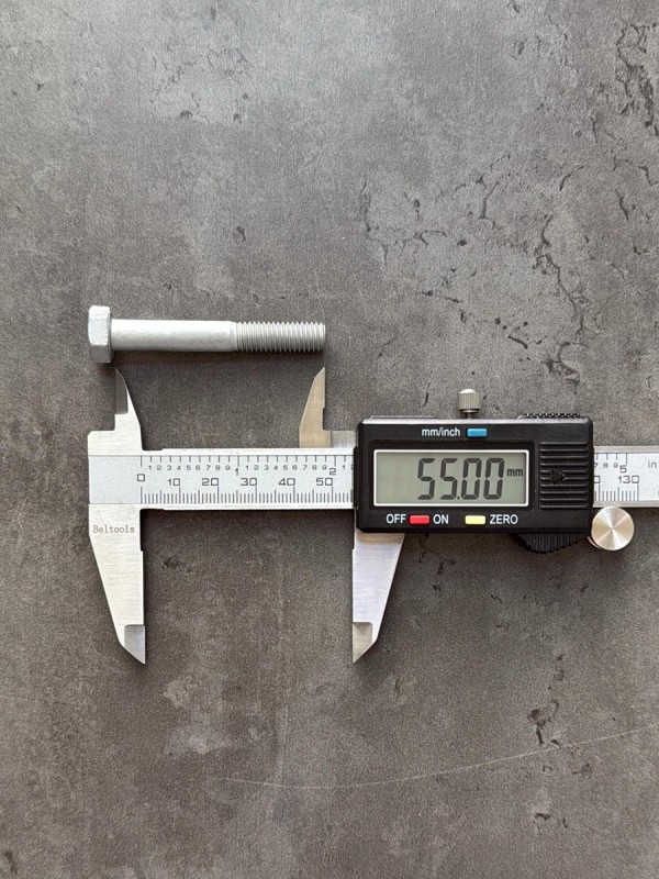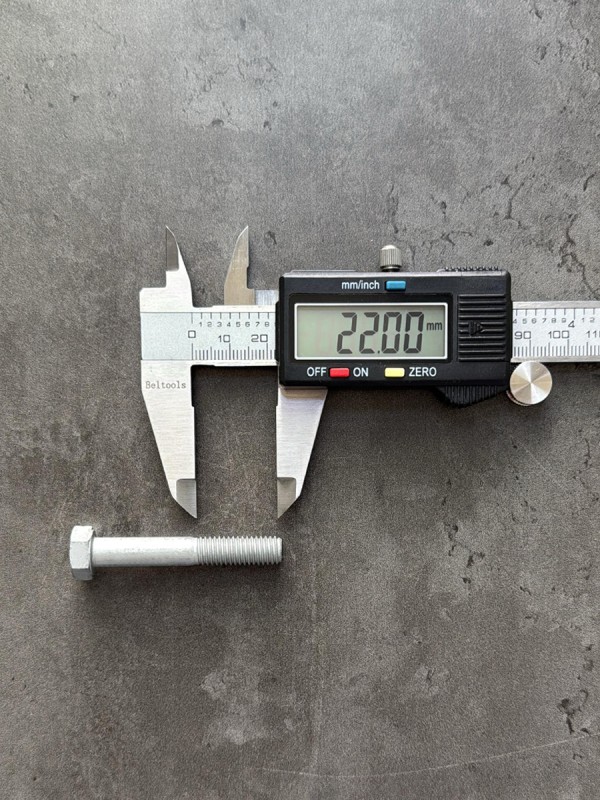 Болт с шестигранной головкой, высокопрочный, мелкий шаг резьбы. Болт российского производства. Заводской номер: 00001-0059897-319. Стандарт: таблица FIAT-ВАЗ 10312. Диаметр резьбы: 20 мм. Шаг резьбы: 1,5. Длина болта: 130 мм. Длина резьбы: 52 мм. Размер "под ключ": 30 мм. Класс прочности: 10.9. Покрытие: цинк. В соответствии со стандартами, длина болта измеряется от опорной части головки до конца фаски, которой завершается его резьбовой стержень.