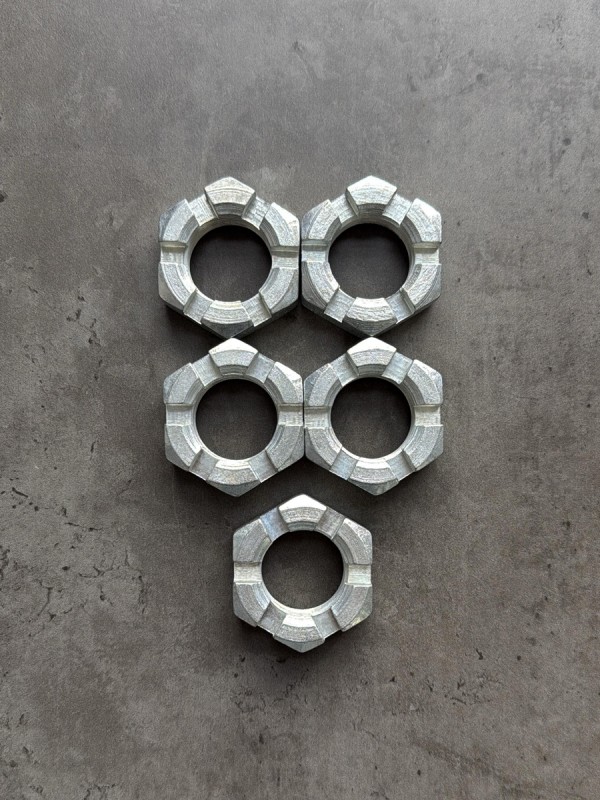 Гайка корончатая, прорезная низкая М30х1,5 ГОСТ 5919-73, класс прочности 8, покрытие цинк ГОСТ 5919-73