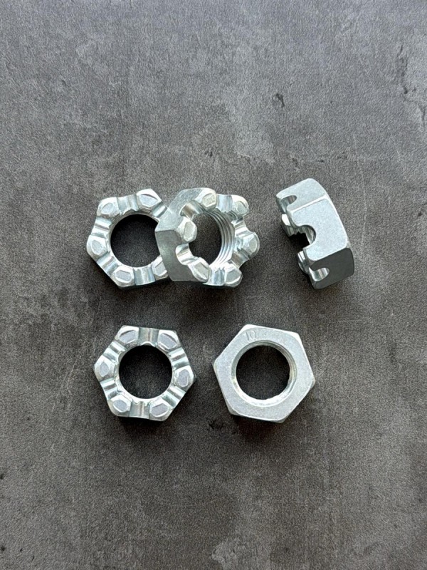 Гайка корончатая, прорезная низкая М20х1,5 ГОСТ 5919-73, покрытие цинк ГОСТ 5919-73